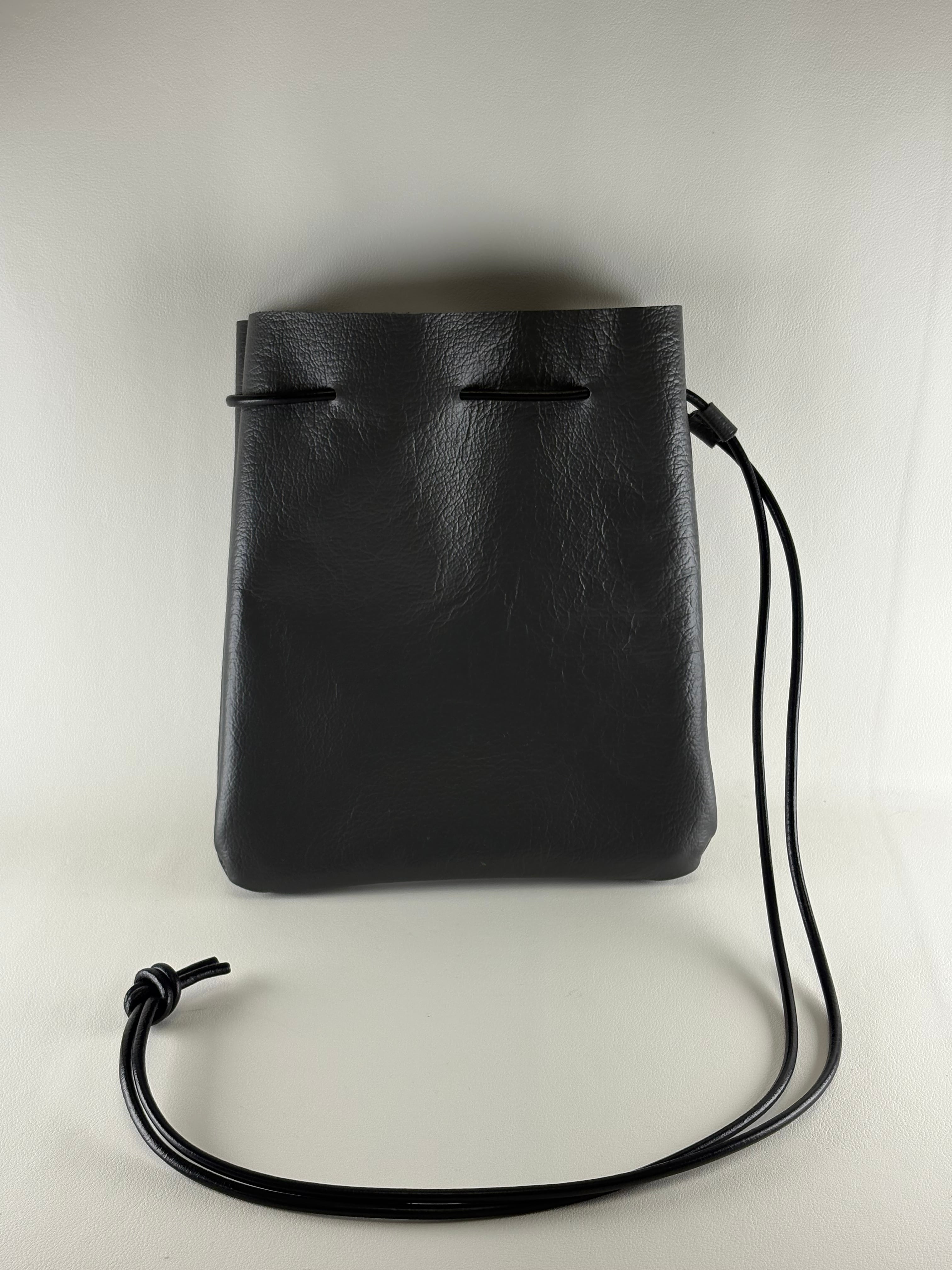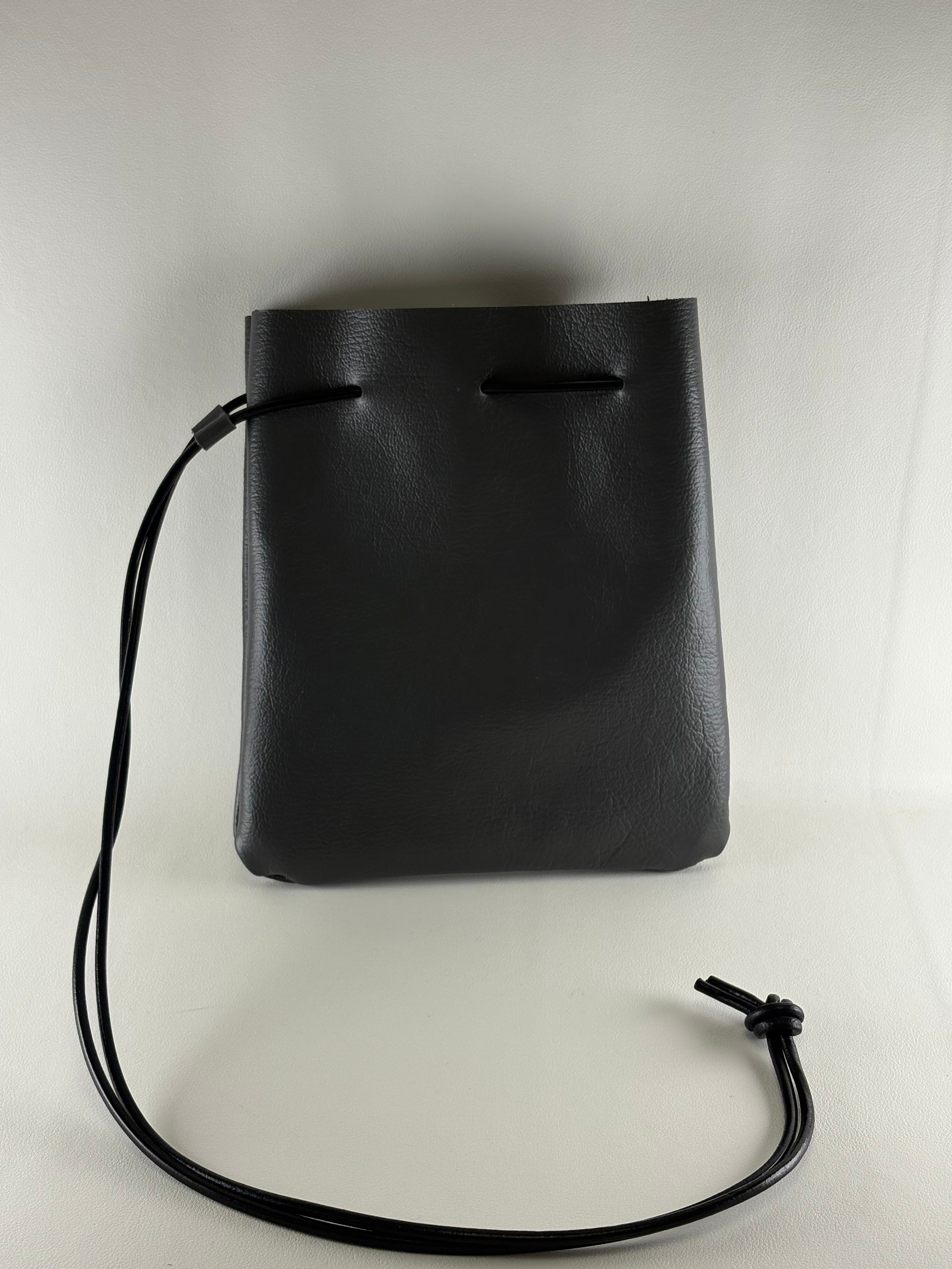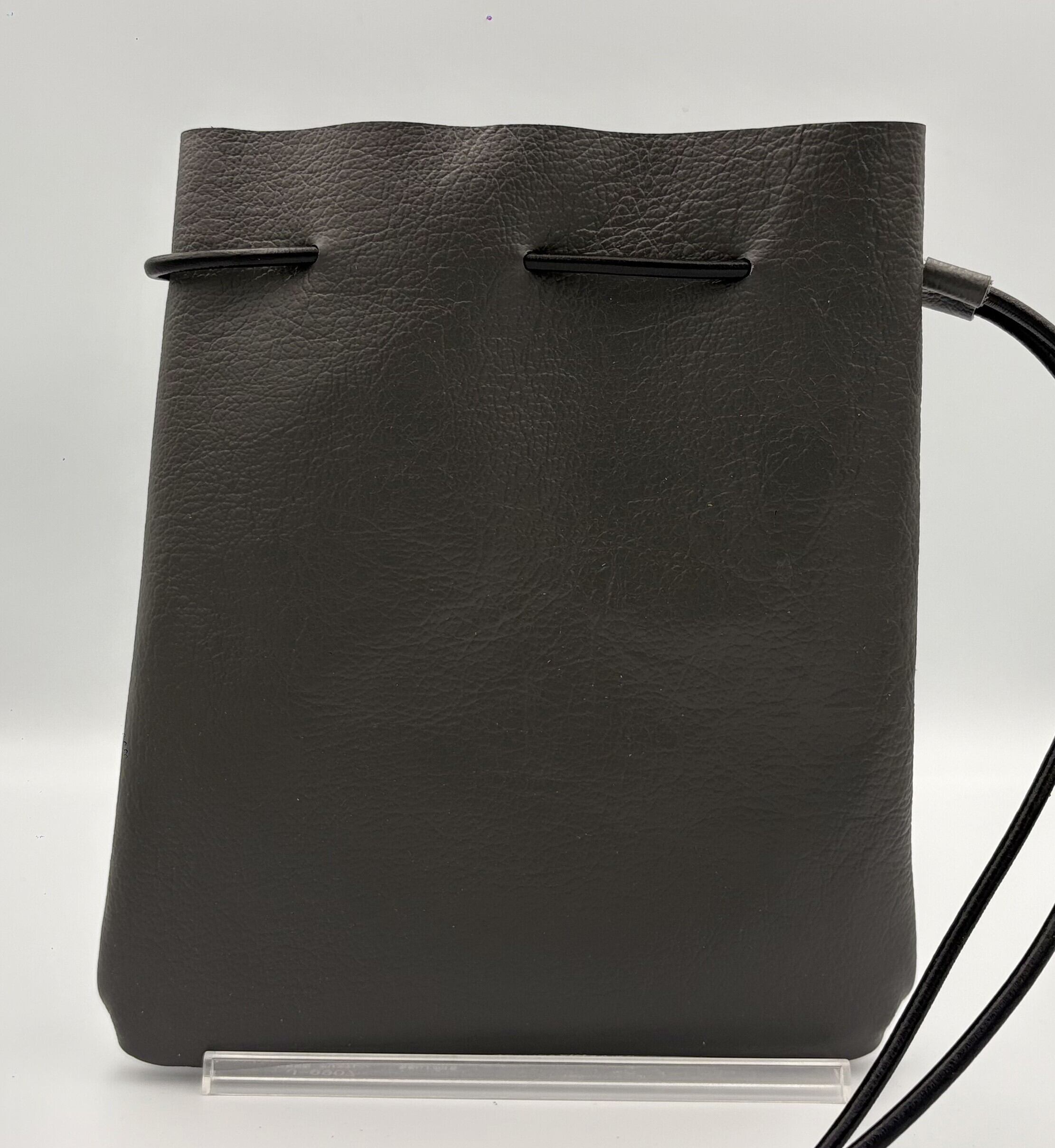 こちらは、グレーの本革で作られたポーチ大(巾着バッグ)です。