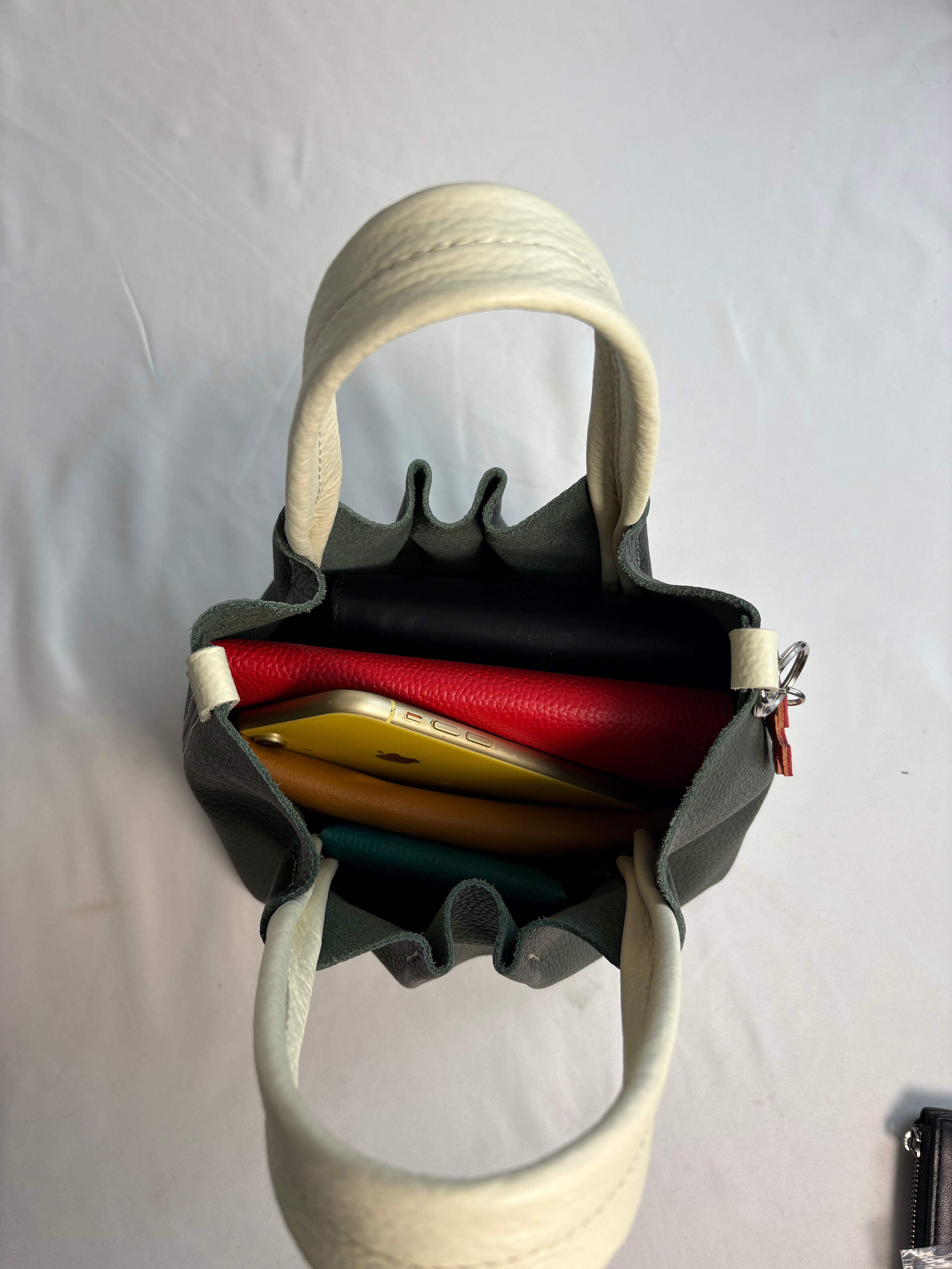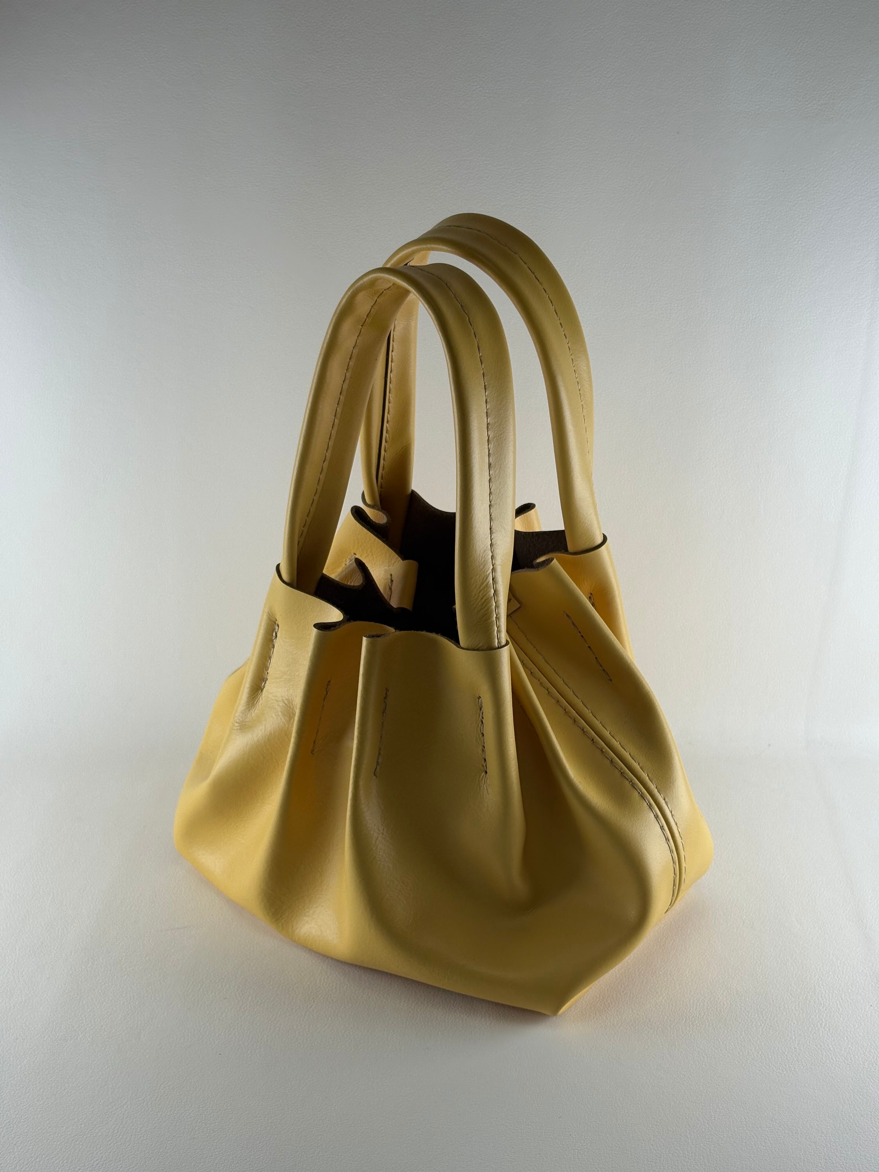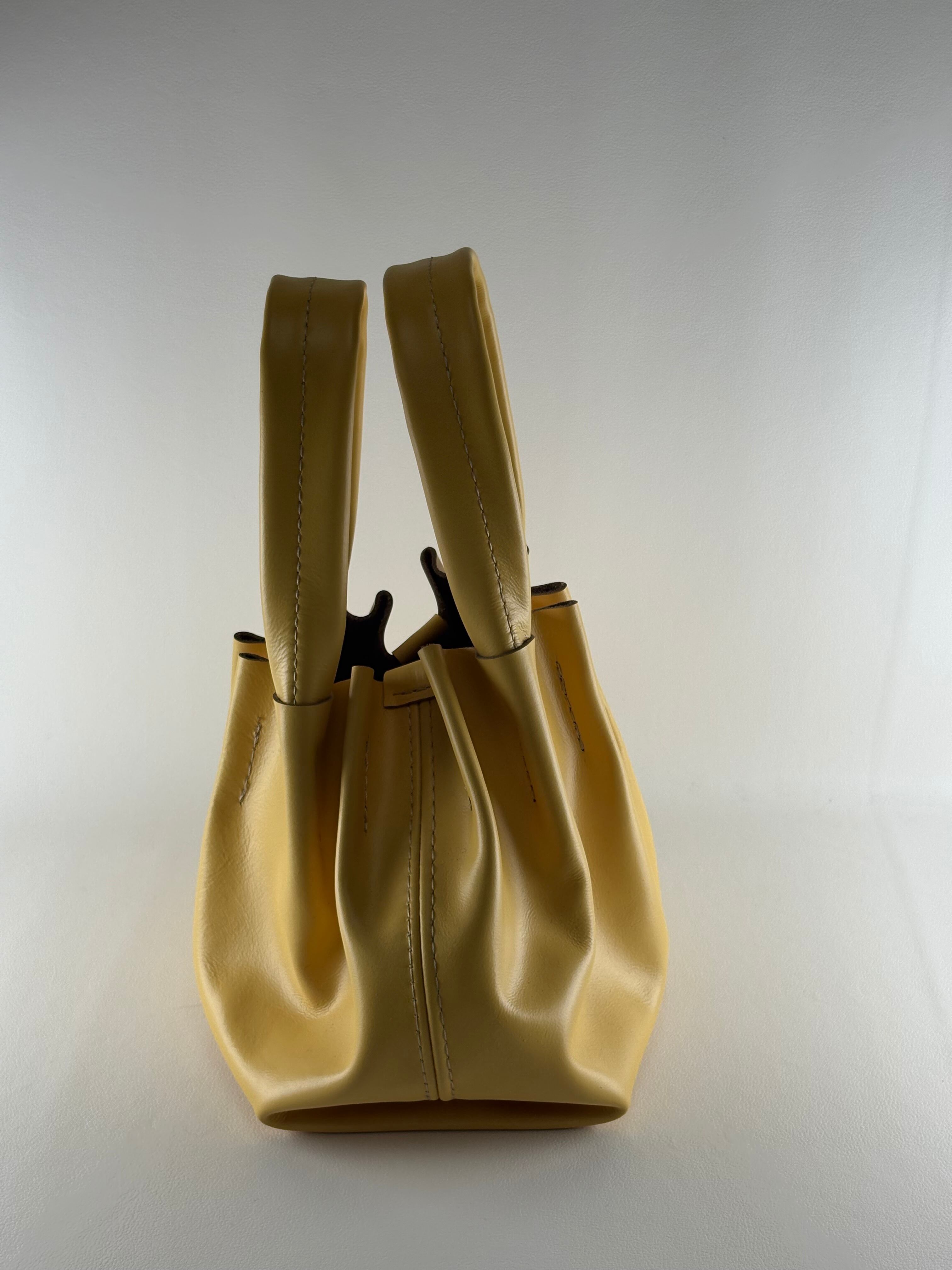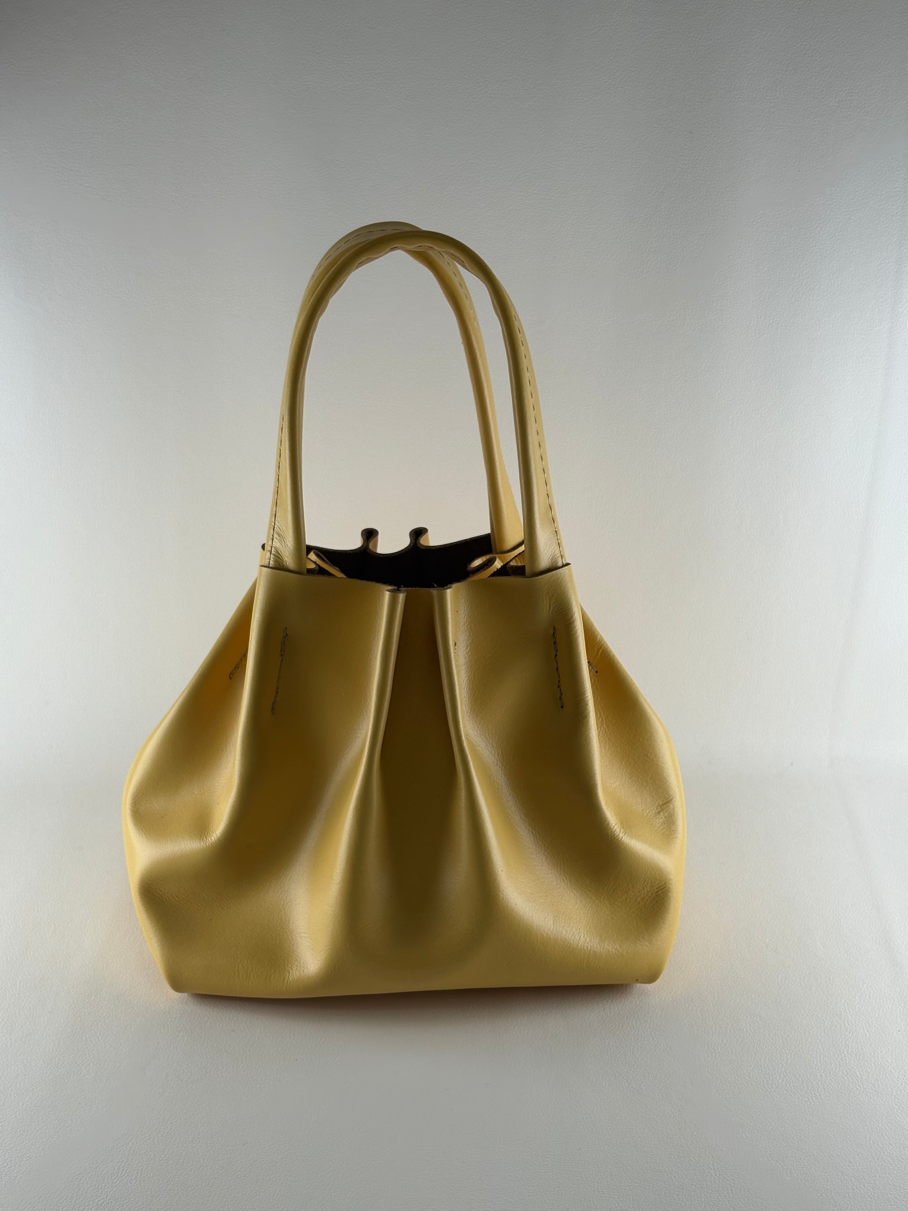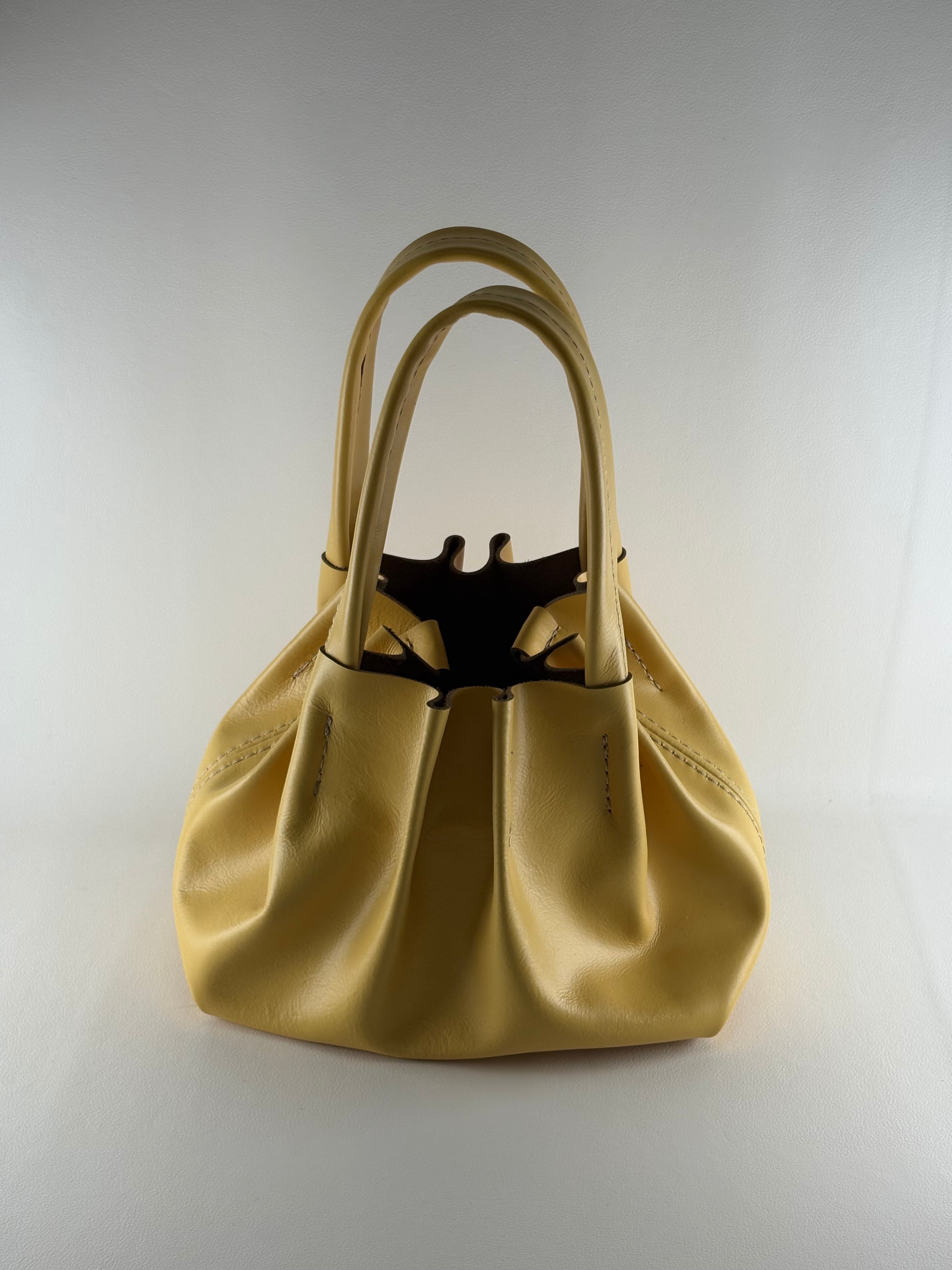 しなやかで個性的なギャザーシルエットが魅力のレザーバッグ