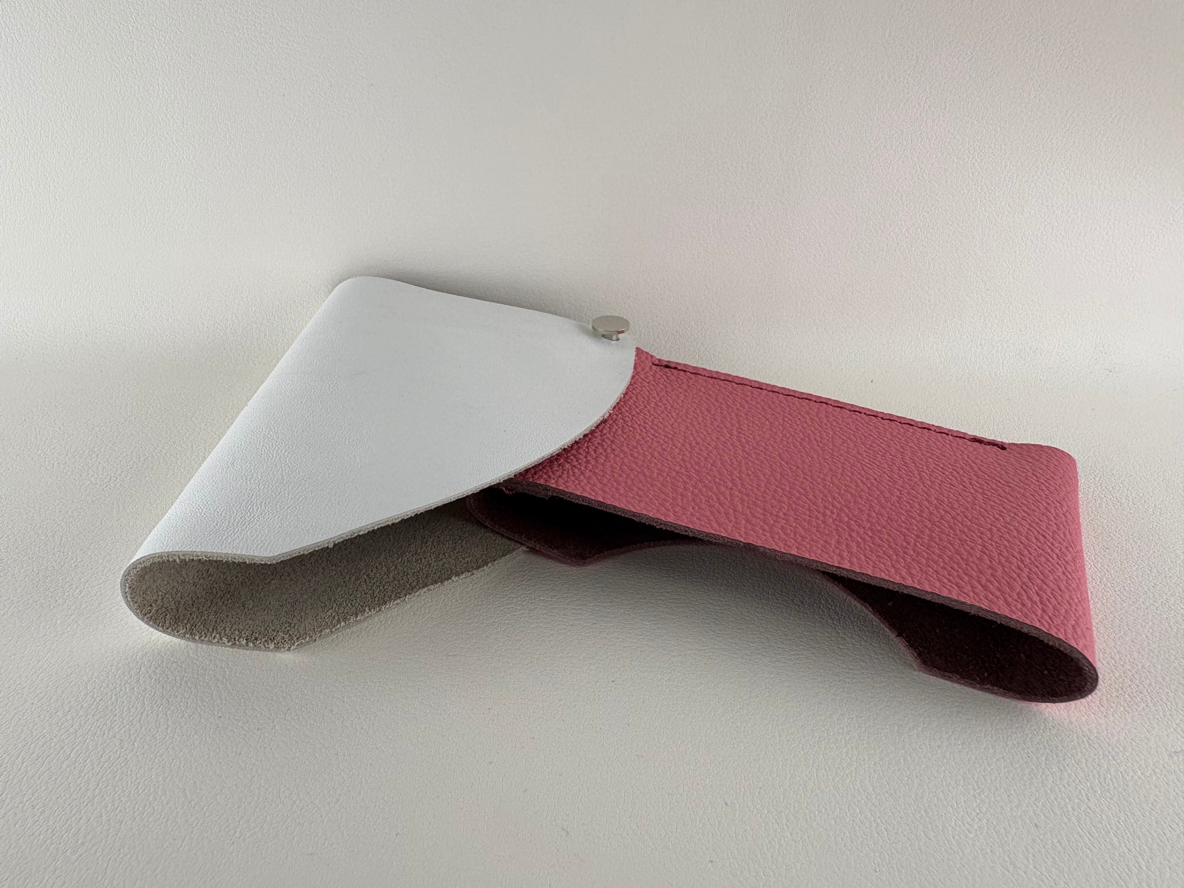 蓋がシボのないホワイト(白色) × 本体はシボのある明るいピンク