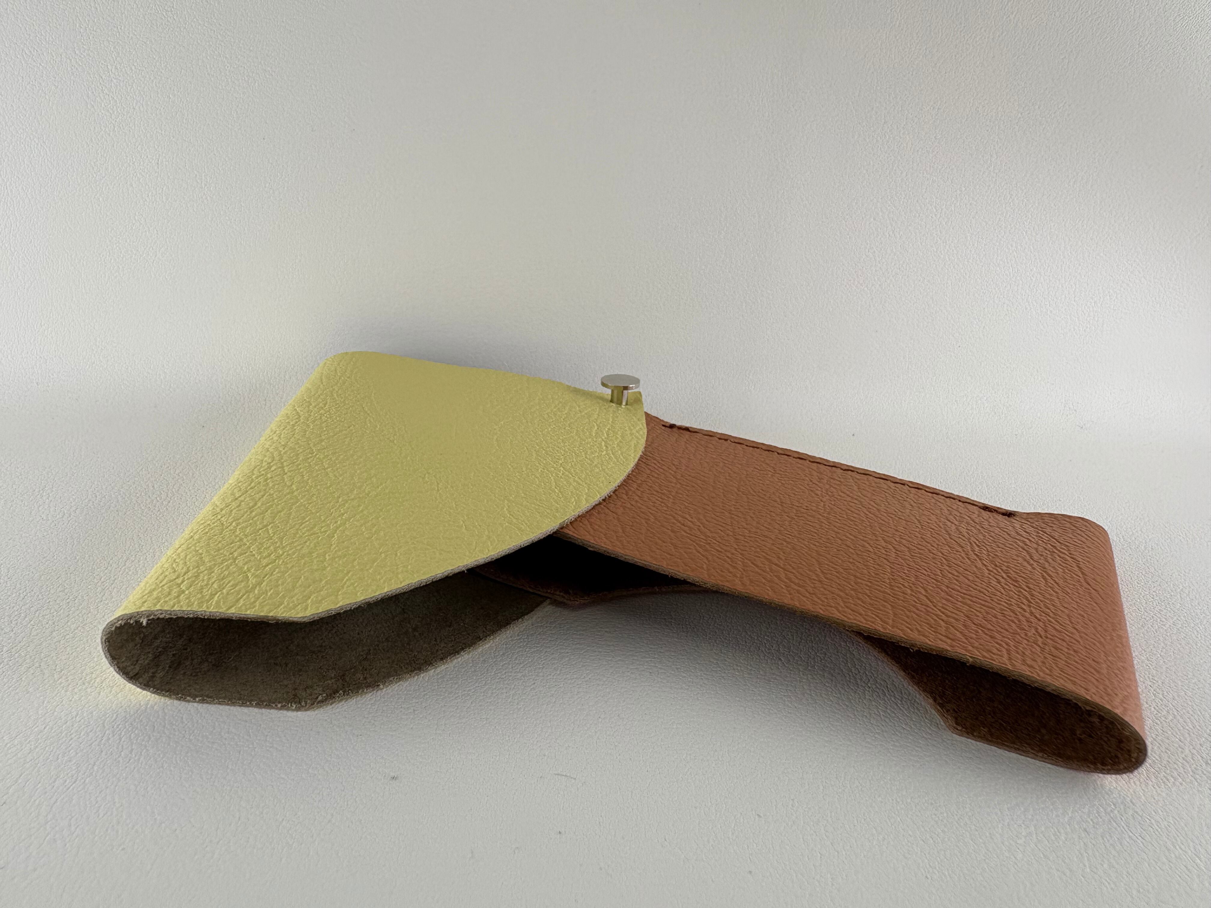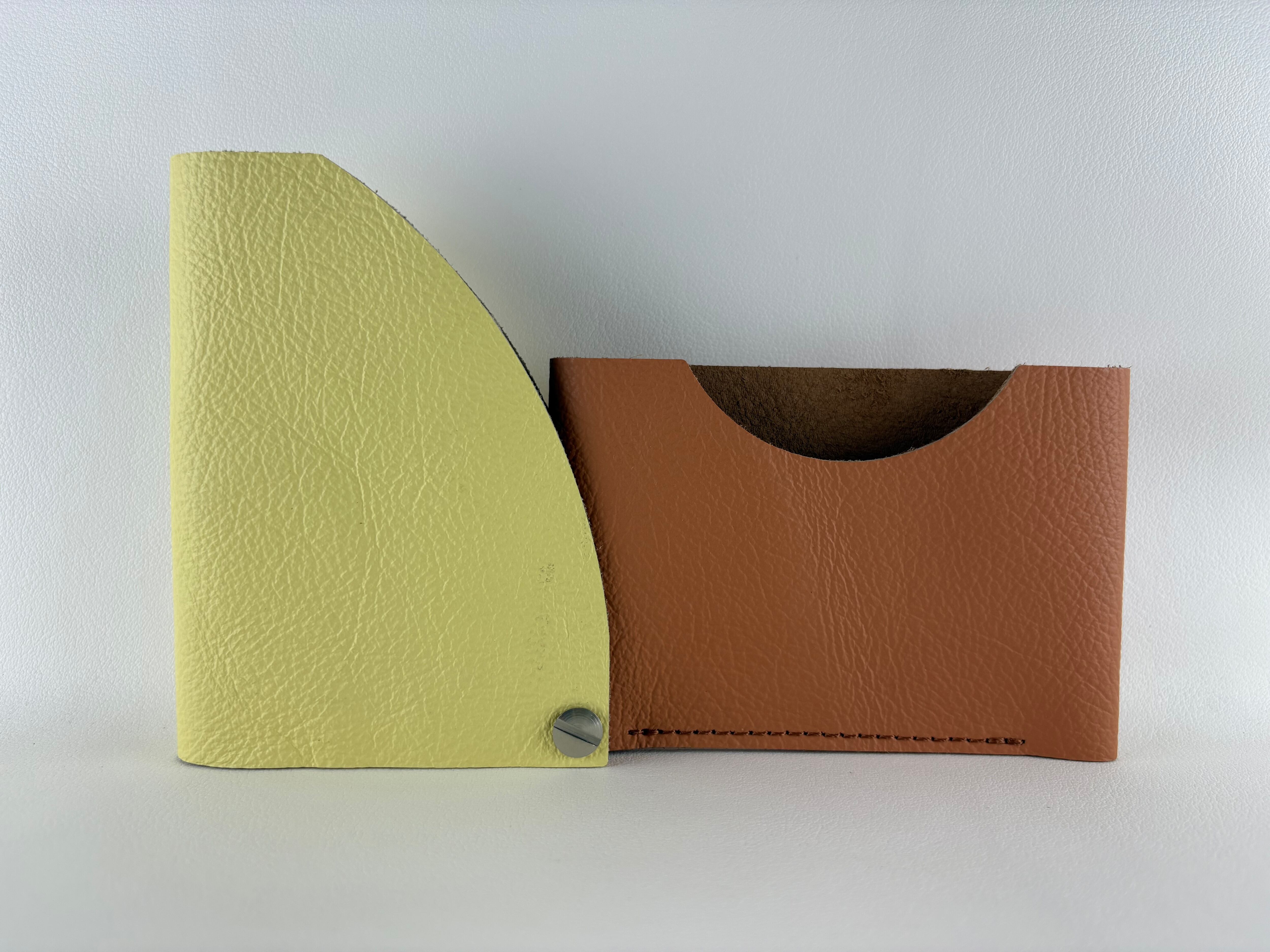 蓋がシボのあるレモンっぽい明るい黄色 × 本体はシボのあるオレンジに近い茶色
